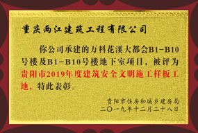 万科花溪大都会地下室项目被评为贵阳市2019年度建筑安全文明施工样板工地