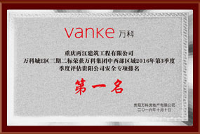 2019年万科集团中西部区域三季度评估安全文明第一名